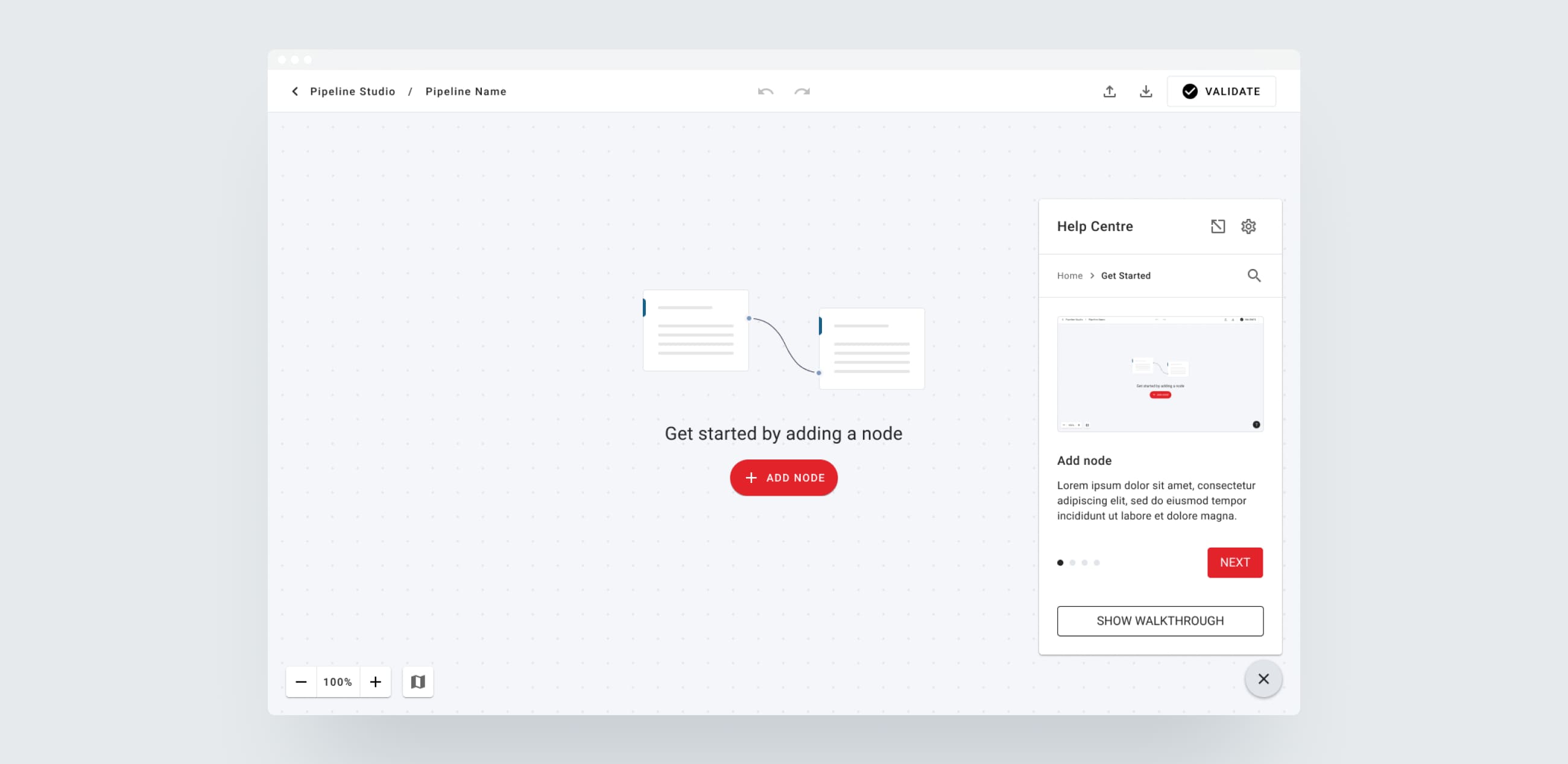We did user testing on Pipeline Studio in August 2022 along with other apps within Navigator. We tested internally with users that were familiar with the platform and concepts. Our main goal was to determine their understanding of the ecosystem and whether they understand the complexity around data management.